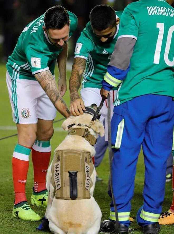 Frida tuvo un merecidísimo homenaje. La perra que conmovió a todos y se hizo famosa en el mundo entero por su labor de rescate tras el terremoto ocurrido hace unas semanas en México fue la invitada de honor en San Luis Potosí, donde la selección de dicho país, ya clasificada al Mundial, venció 3-1 a Trinidad y Tobago por una nueva fecha de Eliminatorias.
