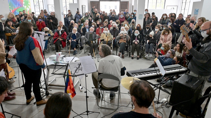 Los alumnos de la Escuela Popular de Música brindaron su homenaje a las Madres, se proyectó un video y se recordó especialmente la figura del músico recientemente fallecido Miguel Ángel Estrella, que fue un incansable luchador por la paz y los derechos humanos.