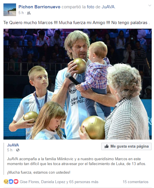 El mundo del vóley utilizó las redes sociales para expresarle su apoyo y condolencias. Uno de ellos fue el sanjuanino Fabián ‘Pichón’ Barrionuevo quien es amigo de Milinkovic y suelen verse a menudo.