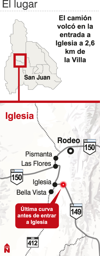 El último episodio, el lunes pasado, fue el más grave porque se cobró la vida de una persona. Vecinos de la localidad de Iglesia protestaron ayer por el desvío que hay en la ruta 149, antes de acceder a la localidad (yendo de Sur a Norte) al considerar que es el causante de los numerosos accidentes en la zona. Desde la Comisaría 22 informaron que en los últimos 3 años se registraron 15 siniestros viales en esa área. Y en su mayoría son vuelcos de vehículos de gran porte. Como los dos camiones del lunes.