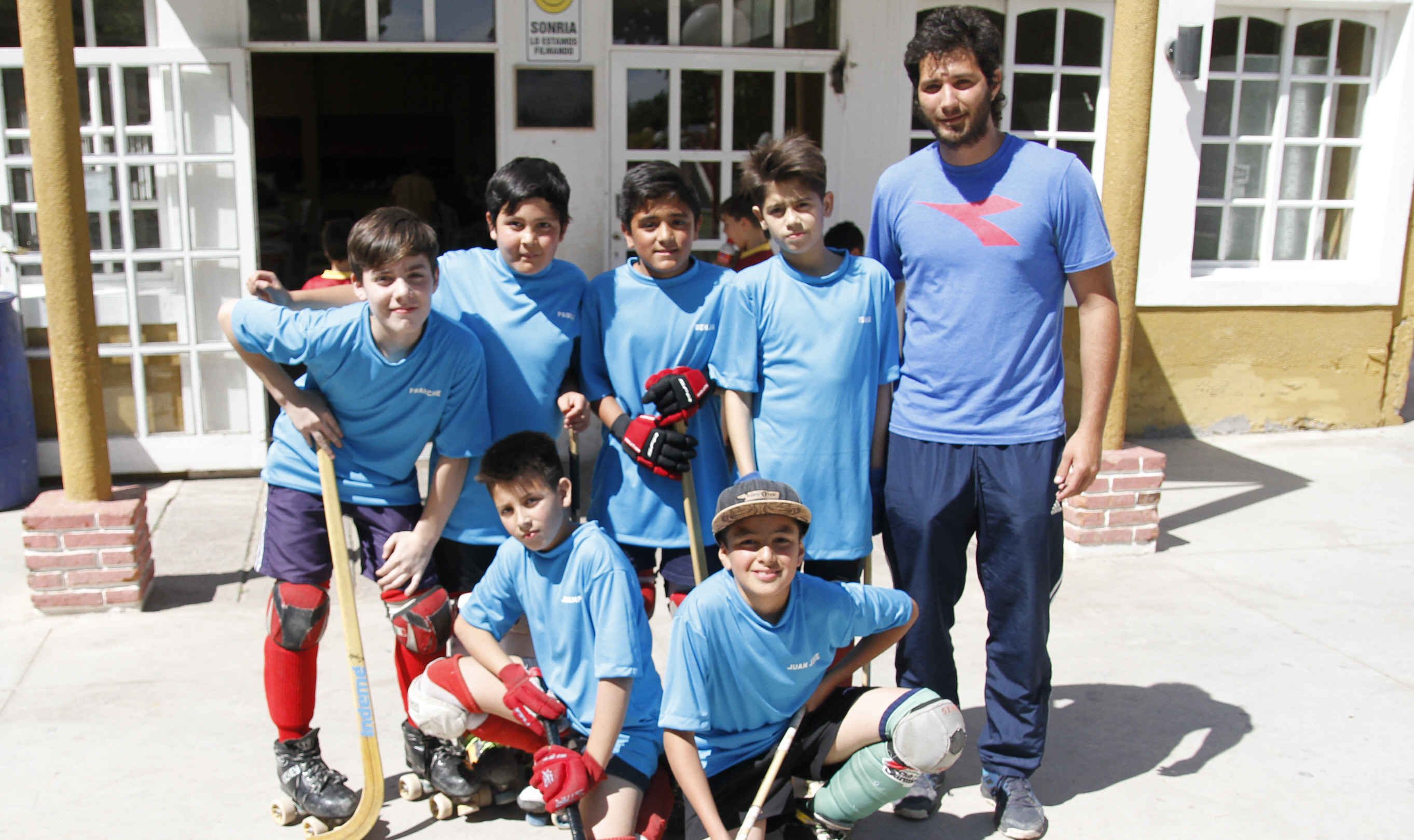Felices. Están los chicos del Colegio Nuestra Señora de los Desamparados de Albardón de ser parte de los Juegos en hockey sobre patines.