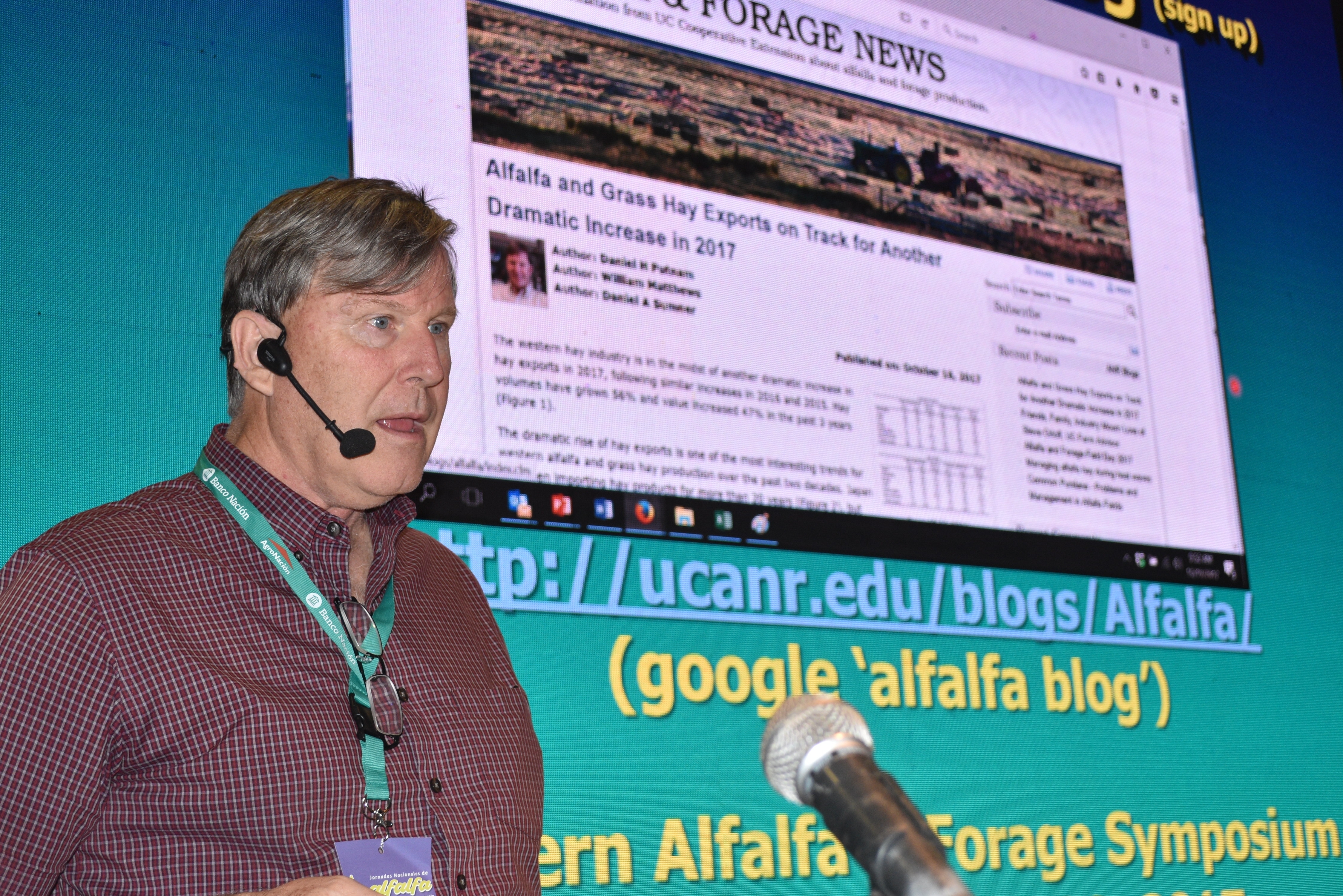 De vasta trayectoria y aceptación técnica mundial. Habló sobre la “Dinámica de producción de alfalfa, adopción de cultivares OGM (Organismos Genéticamente Modificados) y exportaciones”. Su mail es: dhputnam @ucdavis.edu.