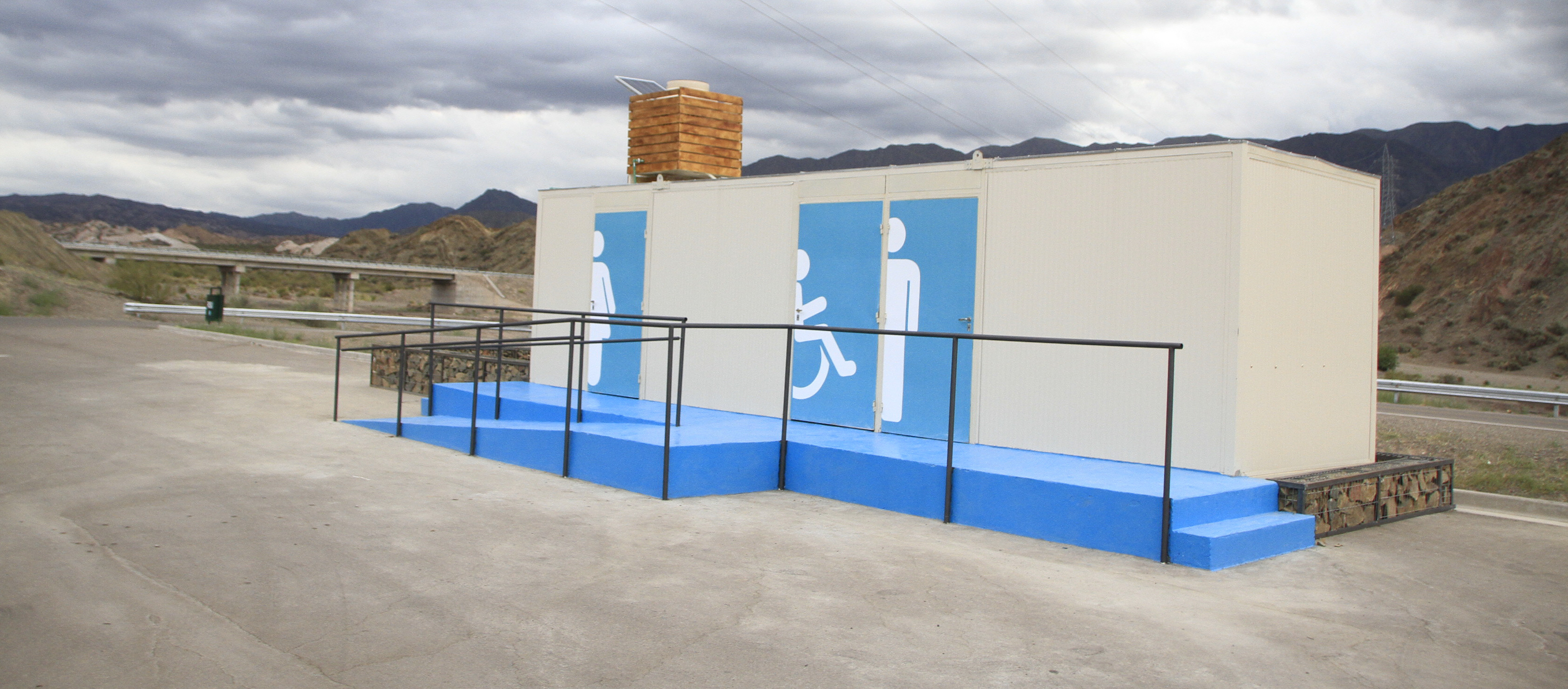 Los nuevos sanitarios están ubicados en los miradores 3 y 5 y el otro en el estacionamiento del embarcadero. Cada uno tiene una capacidad para ocho personas y están equipados con panelería de aislación térmica, lavamanos; inodoros y mingitorios, además de otros elementos básicos como dispenser de papel y jabón. Este sector cuenta con piso antideslizante e iluminación generada por el uso de panel solar y generador fotovoltaico. Cabe destacar que la provisión de agua se efectúa por medio de un camión cisterna y la extracción de líquidos cloacales a través de un biodigestor y camión atmosférico para evitar la contaminación del dique.