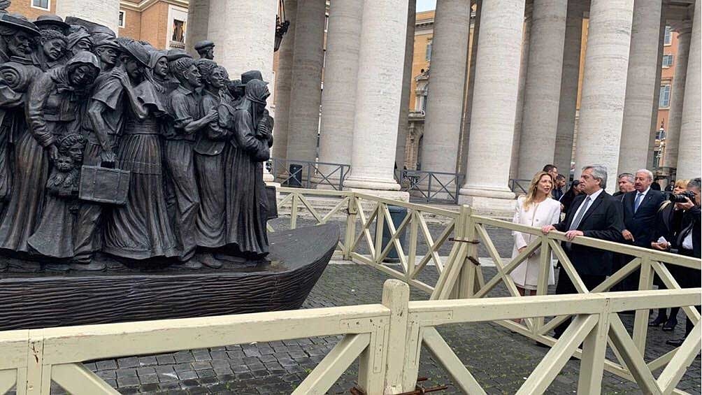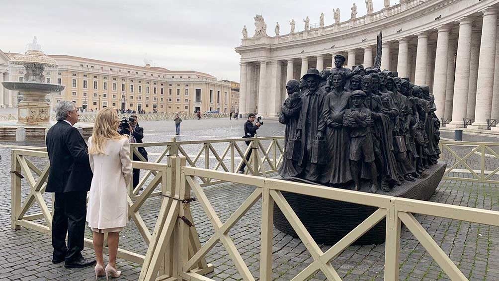 Tras la misa, el Presidente y la delegación visitaron en la Plaza San Pedro una estatua dedicada a los migranes y refugiados, "Ángeles inadvertidos", que el pontífice descubrió a fines de septiembre.