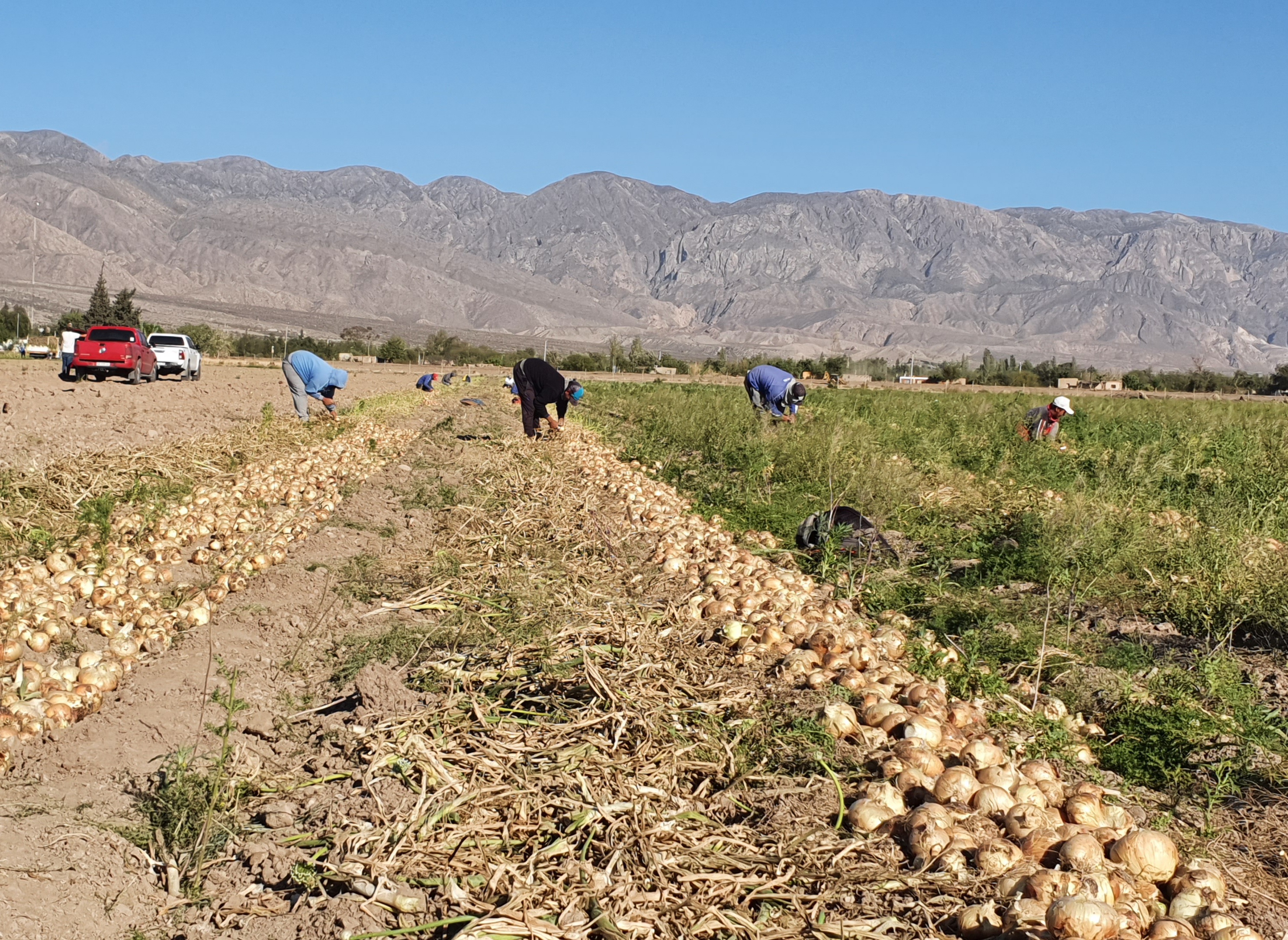 En pleno Pocito, G.I. arrancaba cebolla y lo visitamos. Estaba cargando para una provincia cercana, el precio era de $5,00 a $5,50 por kilo, según calidad. El rinde promedio, sobre 2.000 bolsas de 20 kilos por hectárea. Son $100 a $110 pagados por bolsa terminada. Con sólo agregar que la bolsa rejilla (el envase individual) cuesta unos $20 pesos. Con una sonrisa, expresó que esperaba volver a cultivar lechugas, su anterior actividad, que le daba mejores resultados económicos.