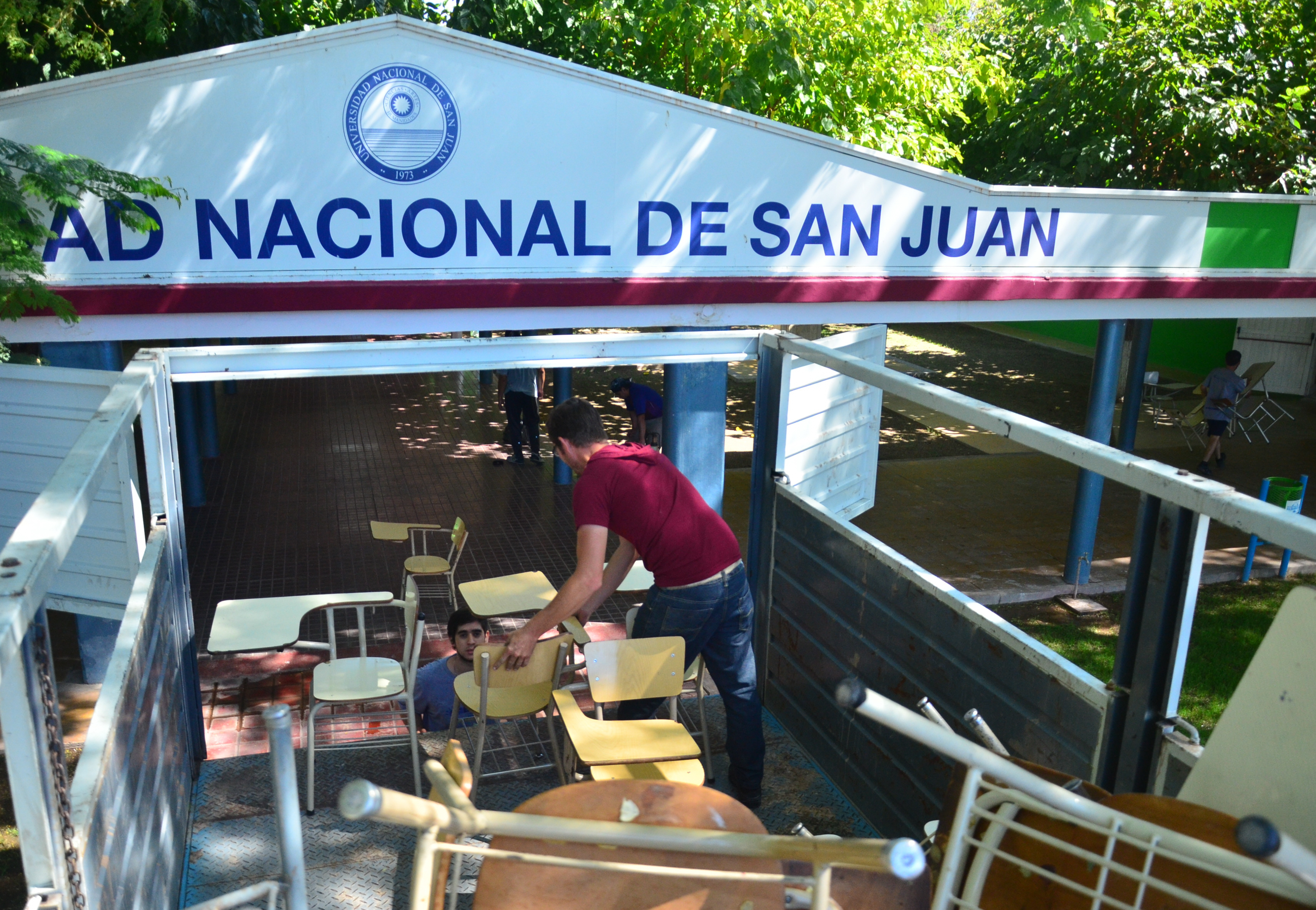 Acondicionamiento. Personal de la UNSJ está terminando de trasladar sillas y muebles al lugar donde funciona la Escuela de Ciencias de la Salud, en el ex hospital José Giordano de Albardón.