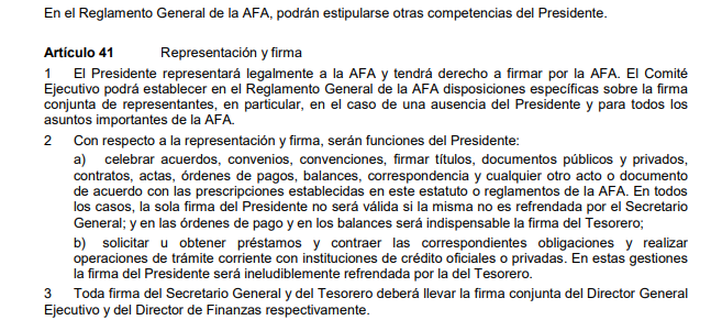 Si bien el dramatismo continúa reinando en Chimbas, a pesar de la anulación de la sanción a Cuevas, igual sería el plantel de Salvador Mónaco quien dispute el Federal "A". ¿Las razones? El artículo 41 del Estatuto de la AFA es en el que se respalda la Comisión para la firma de contratos que ya fueron recepcionados en el ente madre del fútbol argentino que incluso ya recepcionó y avaló algunos, como el del DT Salvador Mónaco. Según el artículo que habla de las funciones del presidente, para la firma de convenios o contratos dice lo siguiente: "En todos los casos, la sola firma del Presidente no será válida si la misma no es refrendada por el Secretario General", es decir que si Cuevas insiste con que sea su plantel el que juegue, en este caso Javier Guillén, secretario del Bohemio, ya avisó que no avalará a Cristian Bove.