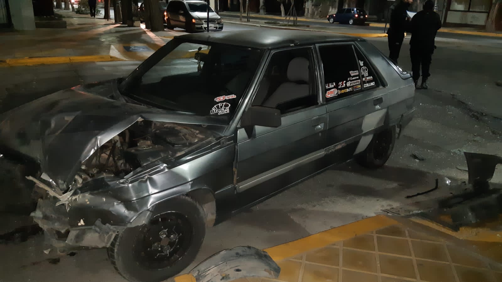 Por la violencia del impacto, el UP terminó en la vereda y ambos autos con daños materiales importantes. Los dos vehículos iban conducidos por mujeres, de las cuales no se precisó su identidad y fueron asistidas por personal médico. En un principio no presentaban lesiones de consideración, agregaron fuentes del caso.
