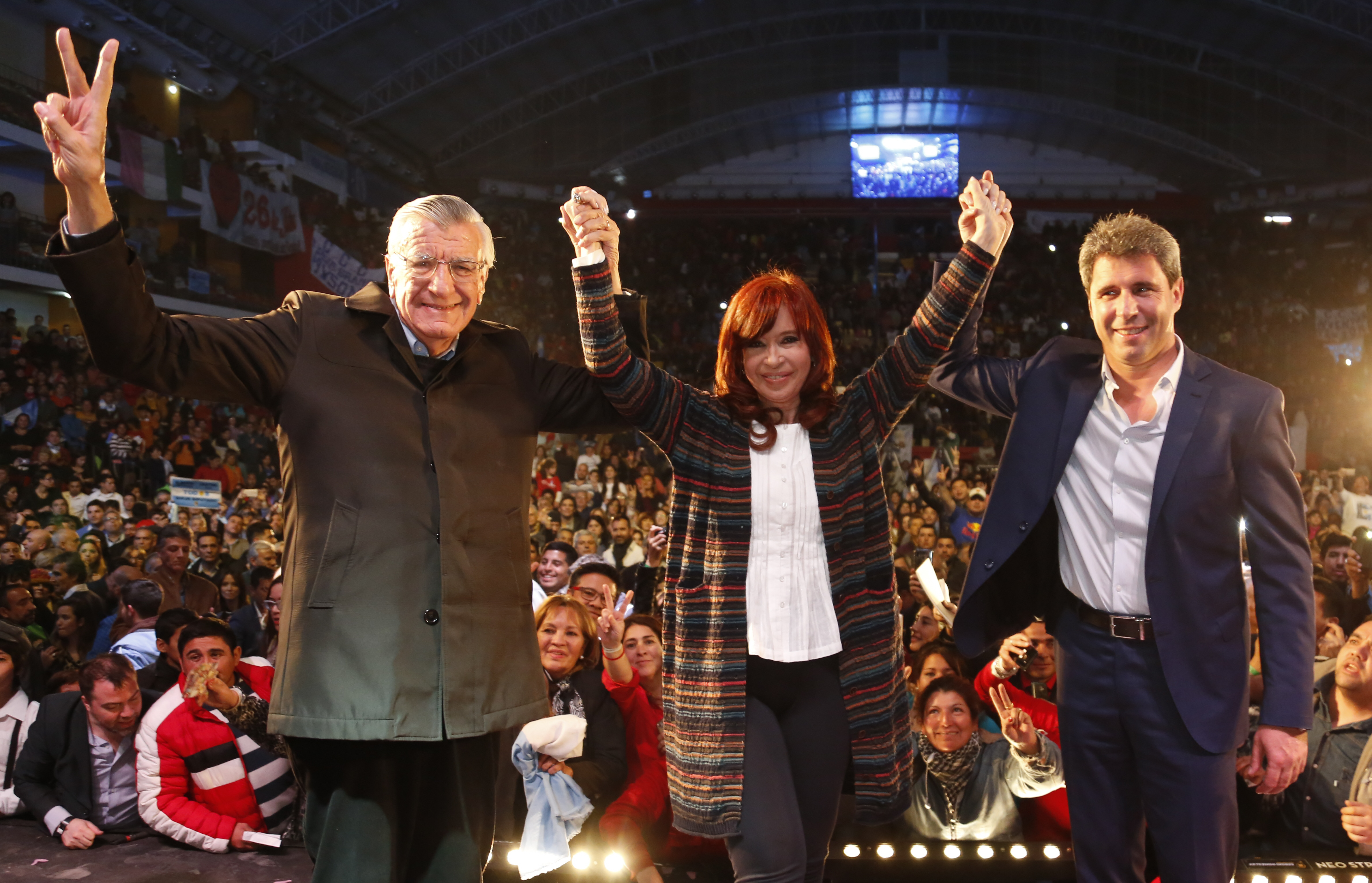 Cristina había llegado al aeroclub de Pocito a eso de las 17.15 y fue recibida por el gobernador Sergio Uñac y el diputado nacional José Luis Gioja, que busca seguir en su banca como cabeza de lista. Ambos acompañaron a la expresidenta al hotel Del Bono Park y luego al estadio. En ciertos pasajes de su discurso, la exmandataria nombró a uno y a otro y a los dos juntos, en una clara señal para no marcar divisiones entre el presidente del PJ sanjuanino y el del orden nacional. De hecho, invitó a ambos a subir al escenario y luego los dos la acompañaron en el cierre del contacto con los simpatizantes que se dio afuera del estadio.