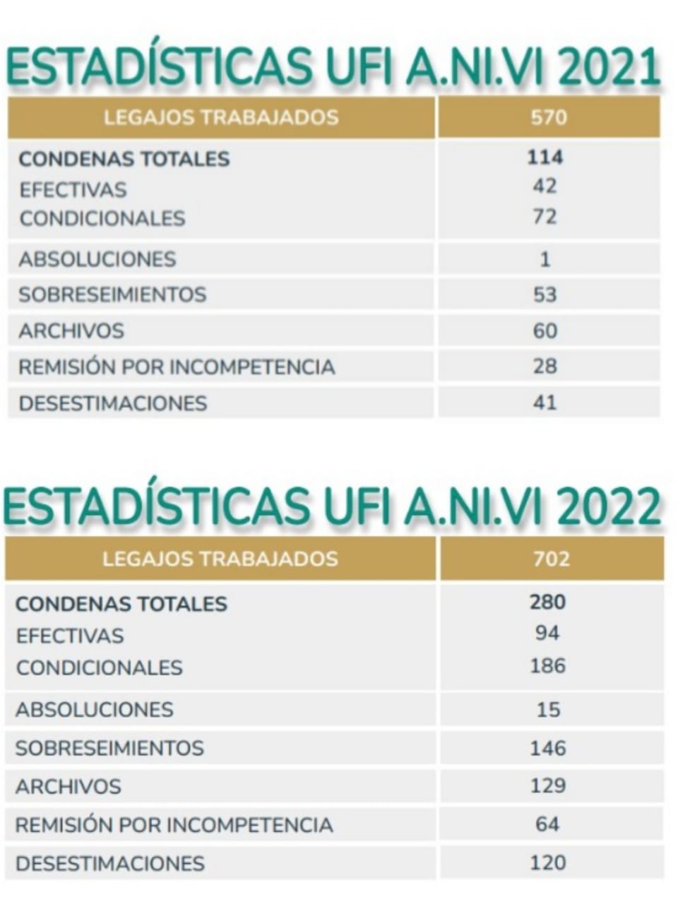 Los datos comparativos entre 2021 y 2022 muestran un notable crecimiento. En este sentido, hubo un aumento de más del doble en las condenas comparando ambos periodos: pasó de 114 condenas en 2021  a 280 en 2022. Cabe destacar que el año pasado hubo 570 casos y 702, en 2022.