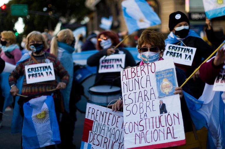 A diferencia de otros banderazos y movilizaciones organizadas en cuarentena, en el llamado de hoy se involucraron pocas agrupaciones y partidos políticos. “Vamos a marchar cada uno por nuestra cuenta, no como espacio”, advirtieron a LA NACION desde Acción Conjunta Republicana, una de las organizaciones que suele encabezar los reclamos. Los referentes del grupo están presentes en la movilización, pero optaron por no plantar banderas para evitar ser asociados a líderes o ideologías políticas, y encabezar un reclamo “más genuino”.
