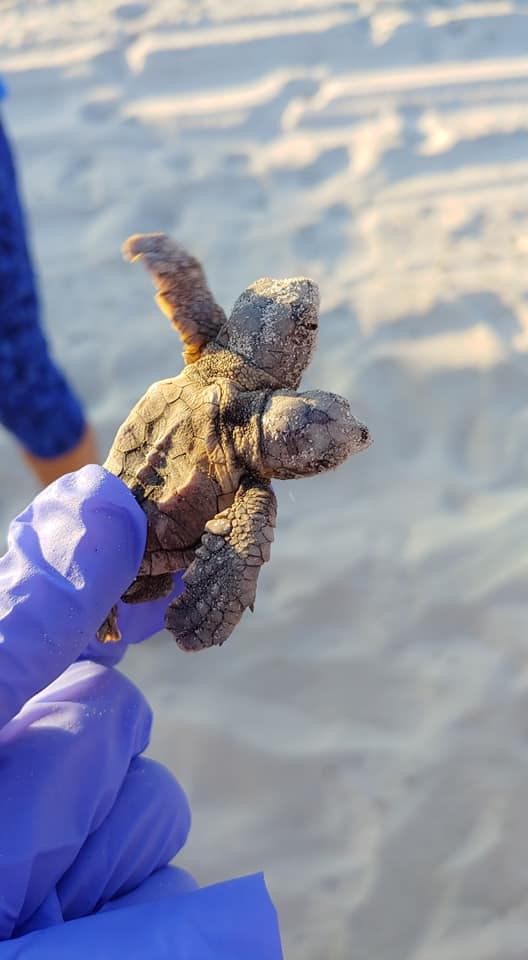 Una tortuga de mar bebé con dos cabezas fue hallada en Carolina del Sur, Estados Unidos por la Patrulla de Tortugas Marinas Hilton Head Island que trabaja realizando un inventario de los nidos de esta especie en la Isla Hilton de Carolina del Sur.
