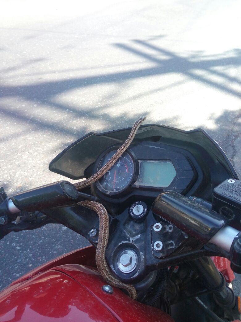 Es que, cuando salía de su casa para ir a trabajar, un hombre encontró una víbora de más de un metro de largo enredada en el tanque de nafta de su moto.