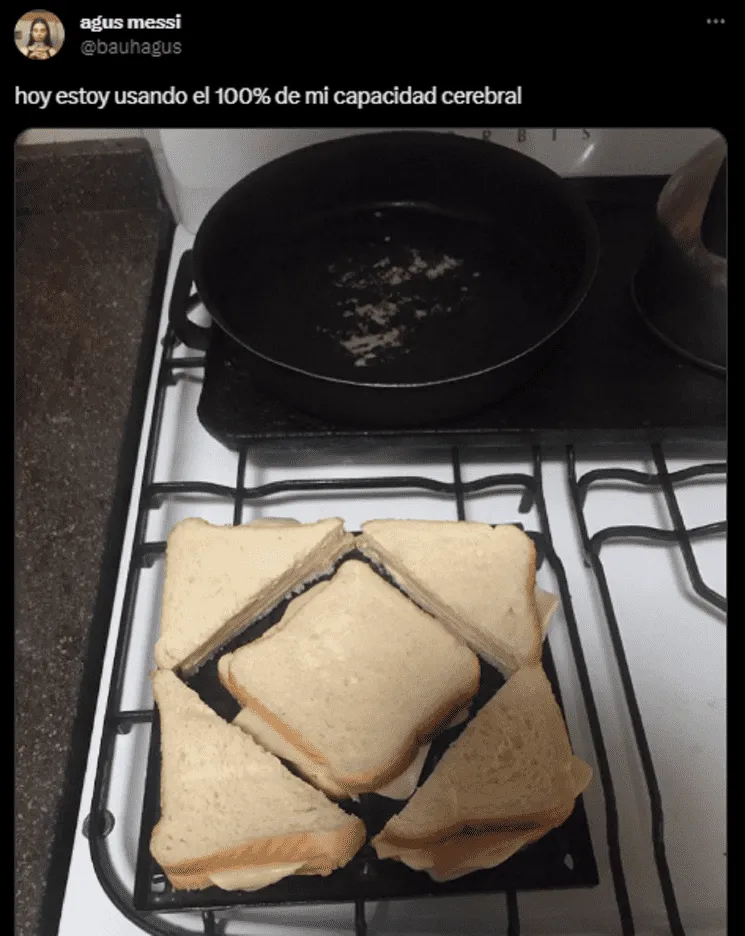 Agustina contó que su deseo era que los panes se doraran por igual: "Tenía solo tres sanguchitos y quería que se quemen parejo", escribió luego, donde varios la felicitaron y la trataron de "genia" por haberlo pensado. La publicación llegó al millón de visualizaciones y obtuvo 87 mil "me gusta".
