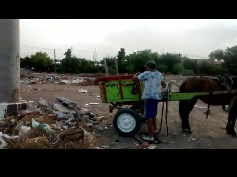 Un vecino del Barrio Hualilán 2 envió imágenes de cómo un hombre tira escombros en la plaza del Sol y no utiliza los contenedores que hay en el lugar.