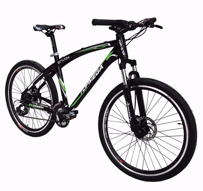 La bicicleta alta gama marca Topmega, modelo Envoy, es negra y tiene detalles verdes. Además, según describió su dueño, de apellido Villalobo, es rodado 26, tiene frenos a disco y 24 velocidades.