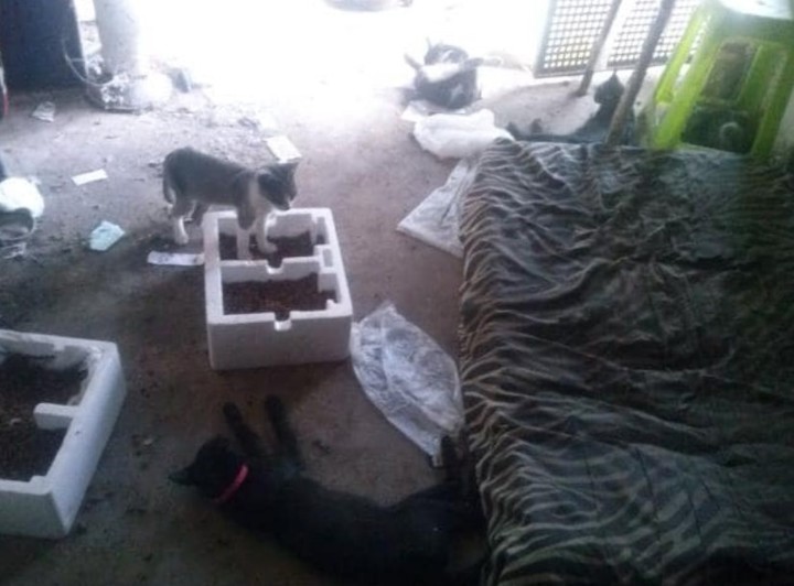 En su precaria vivienda, Gil Pereg no tenía servicios básicos ni muebles. Dormía en un colchón tirado en el piso, rodeado de gatos y mugre. Las imágenes muestran cajas apiladas, bolsas y botellas desparramadas, cajas con alimento para animales y desperdicios.