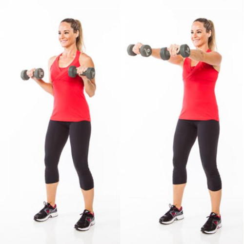 Necesitarás dos pesas para fortalecer todo el tronco superior, core y brazos. Repite este sencillo sencillo ejercicio 15 veces en 3 tandas.