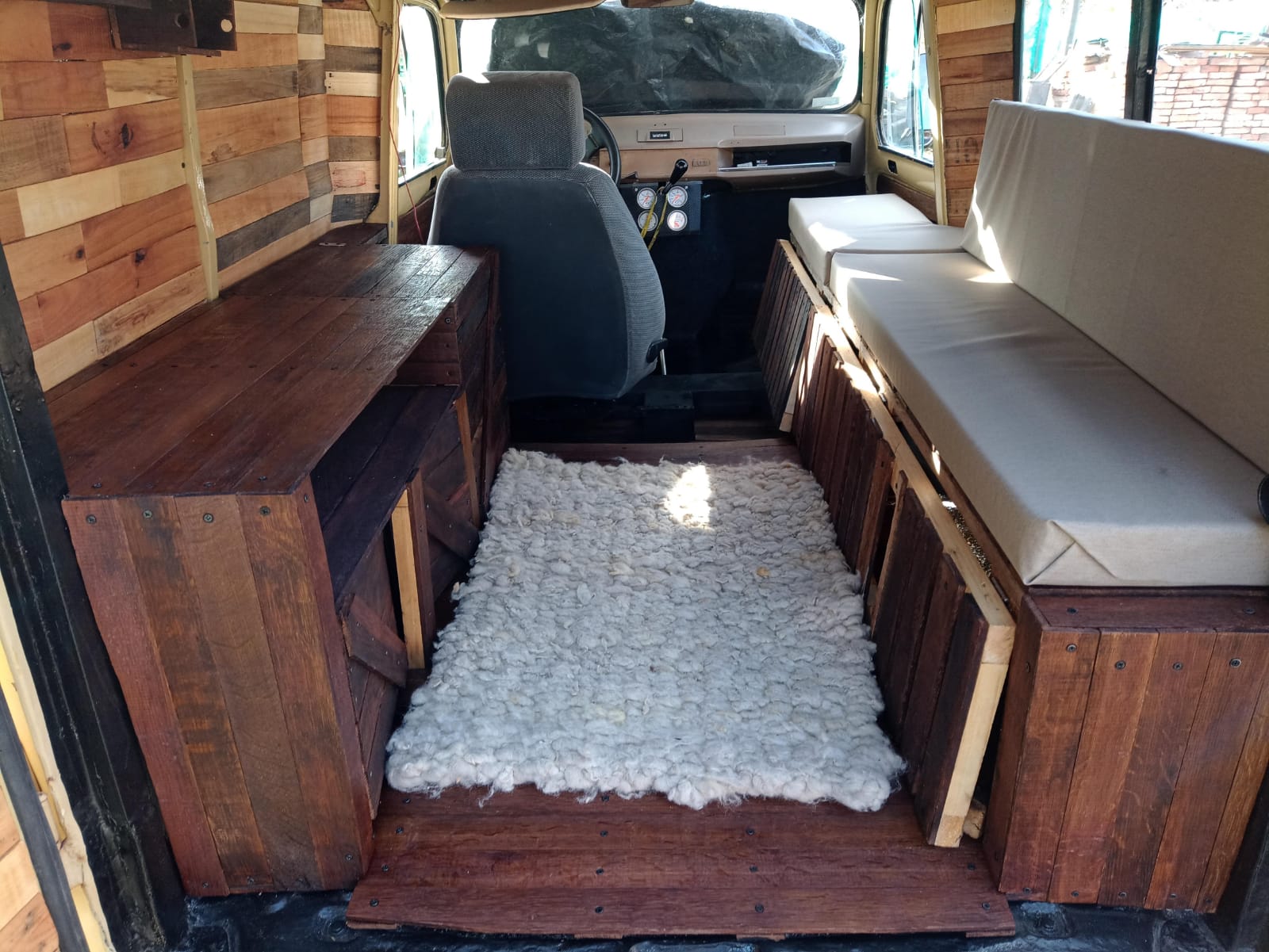 Con ayuda de mecánicos que lo ayudaron, el motor estaba en buenas condiciones asi que le apuntaron a realizarle tren delantero, bujes, retenes, amortiguadores y embrague, todo eso en cuanto a lo mecánico, pero el trabajo mayor se dio en el interior para que la furgoneta hoy luzca reluciente. Cuando la compró no tenía ventanillas. "Hemos hecho todo de manera artesanal con madera por dentro. Junto con amigos le hicimos un portaequipaje, un mueble para dormir y un mueble para la cocinita", explica y aclara que casi todo está hecho con cajones de frutas. "El interior está hecho con madera de cajón de fruta, está aislado y revestido. Los muebles para dormir y para la cocinita está hecho con madera de roble, que generalmente se usa en las bodegas para tener los vinos y luego los descartan", expresó. "Es el motorhome más pequeño del mundo" dice con total humildad. Como el viaje lo realizará él solo, dejó solamente la butaca del conductor , "Había que aprovechar los espacios al máximo posible. Ya hice contactos con gente que anda haciendo viajes y sería muy lindo poder encontrarmelos en algún momento del viaje".