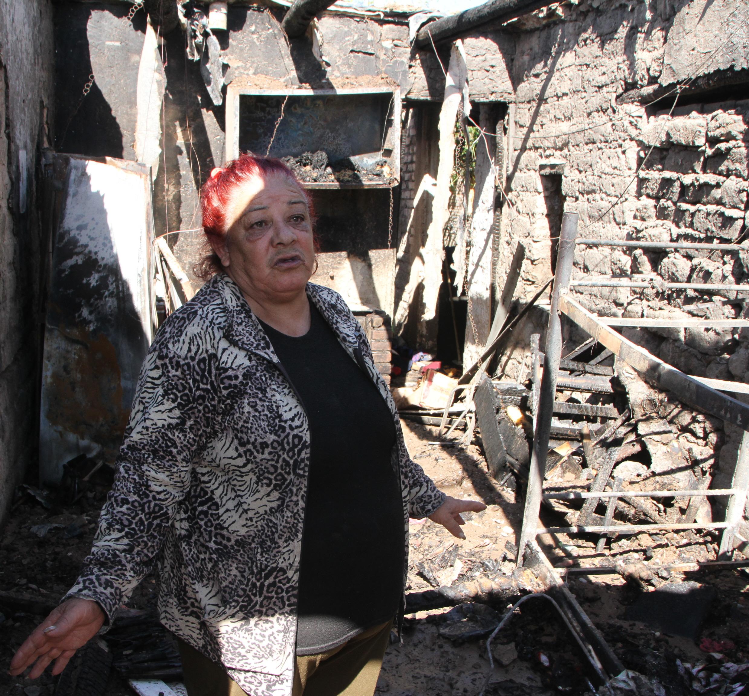 Marianela Videla (empleada doméstica, 23) hace unos meses se fue a vivir con sus dos pequeños hijos (1 y 3 años) a esa humilde casa que le prestó su tía Luisa Videla (foto). Sobre las 22.30, un cortocircuito generó el inicio del fuego en la pieza, indicó la tía de la víctima. Vecinos y bomberos poco pudieron hacer. Se quemaron una heladera, un televisor, camas, juego de sillas y mesa, muebles, ropa y todo lo que había en el lugar quedó reducido a cenizas. “No le quedó nada, ahora tienen que buscar un lugar para vivir”, dijo Luisa Videla.