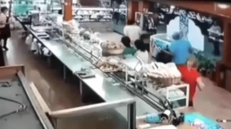 Según quedó registrado en las cámaras del comercio, en la noche del domingo se ve cómo el hombre, de nombre Alfredo Falcón, que vestía una chomba celeste, ingresa vehementemente al comercio y se dirige hacia una mujer identificada como María Teresa Acosta, a quien le dispara. La víctima se toma el abdomen y cae al piso donde es socorrida por otros clientes.