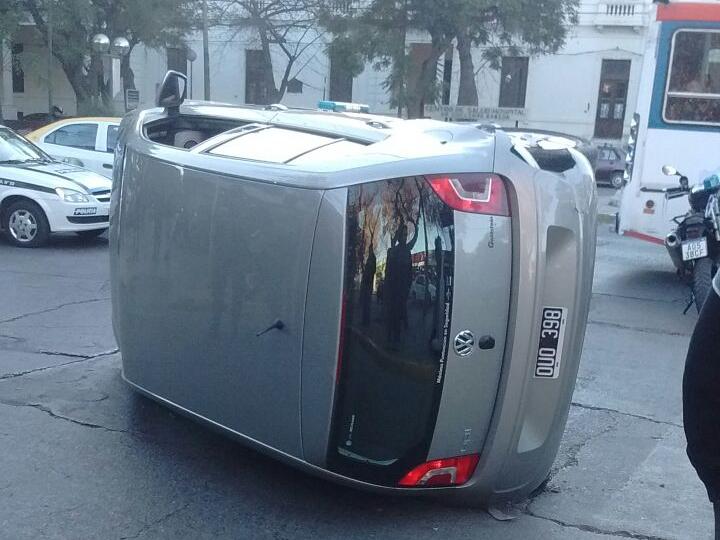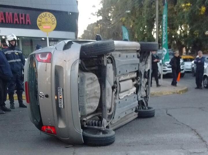 Un VW Up! que viajaba por Córdoba y que sobrepasó a un colectivo poco antes de empalmar con Rawson, fue impactado por atrás por un Toyota Etios. El Up! volcó y su ocupante, que iba con cinturón, no sufrió prácticamente lesiones, precisaron fuentes policiales.