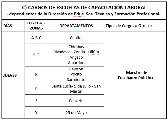 Atención para carga de designaciones de cargos directivos, excepto zonas alejadas y ESA (sin listado y con proyecto): se desarrolla de lunes a viernes en el horario de 8 a 12,  en la oficina de Reubicaciones del Ministerio de Educación, ubicada en el Centro Cívico, 2° piso, núcleo 2, segundo pasillo.