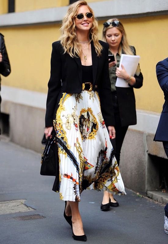 Por último, tímido pero presente estará el estampado típico de Versace, con sus cadenas, animales salvajes y mucho dorado. Un estampado bien barroco que hace algunas apariciones en prendas ultra fashionistas como faldas midi y camisas homenajeando al célebre diseñador.