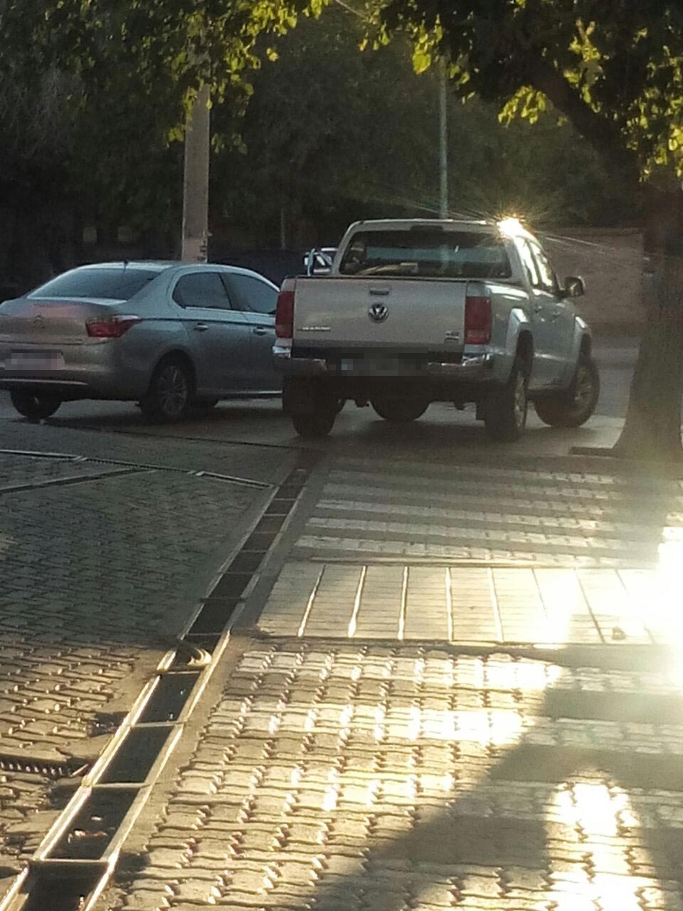 Esto es todos los días en la estación de servicios de avenida Libertador y calle Urquiza, en Capital. Uno debe bajar a la calle para cruzar al otro lado de la vereda.