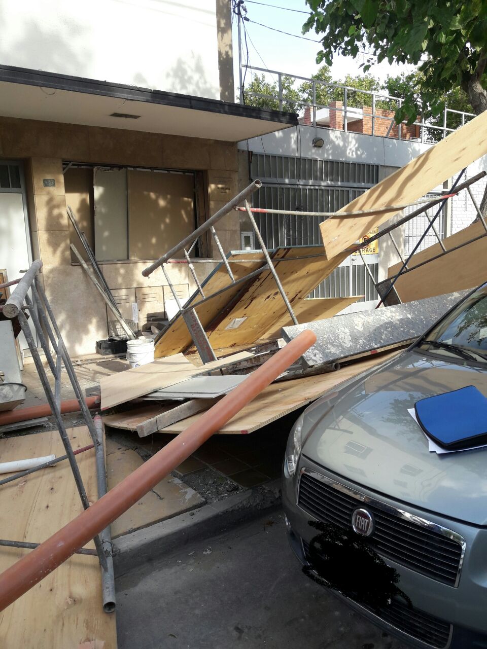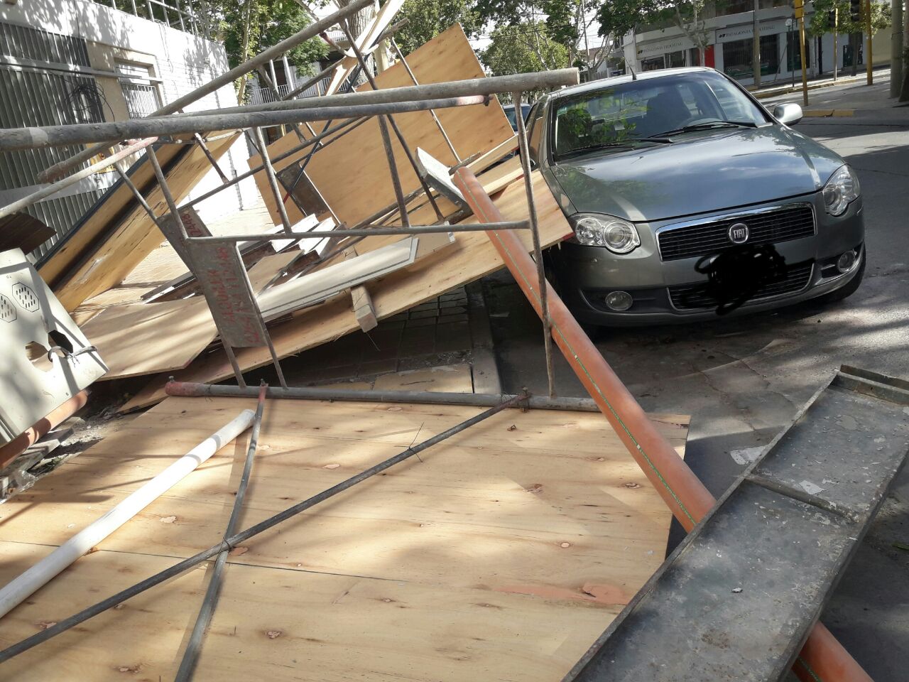 Un andamio había caído sobre el auto. “Así comenzó una odisea de tres horas, ya que nadie quería hacerse cargo de la situación. En el lugar no había ningun cartel con el nombre de la empresa constructora y encima era feriado”, dijo el damnificado a DIARIO DE CUYO.