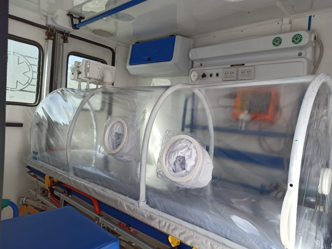 Ponce contó que se trata de la primera camilla cápsula fabricada íntegramente por los profesores de la institución y personal hospitalario, utilizando elementos y materiales en desuso y una impresora 3D. Y que funciona con un motor electrónico que permite el intercambio permanente de aire dentro de la cápsula, eliminando el aire viciado luego de ser filtrado. Es desmontable y permite subirla al interior de la ambulancia para su traslado. Trabaja con energía 220 V, 12 V con una batería que le brinda hasta 10 horas de autonomía.