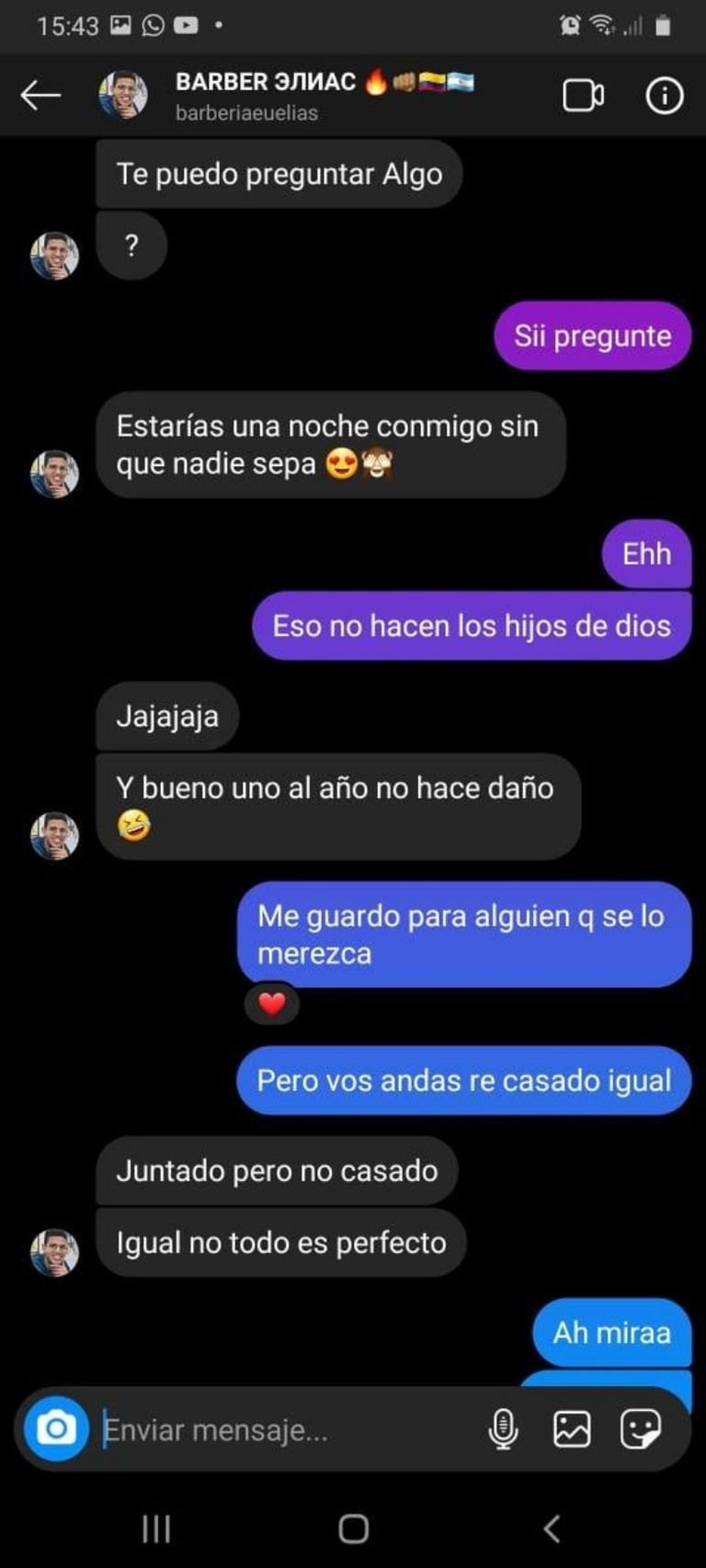 Según la publicación del denunciante, su hija se contactó con la peluquería del acusado para pedirle un turno pero, en lugar de obtener la cita para cortarse el pelo, empezó a recibir una serie de mensajes del hombre en los que le proponía que pasaran la noche juntos.
