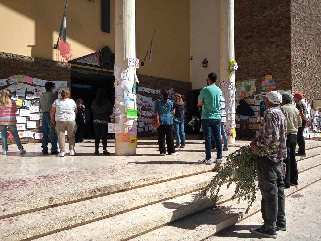 De hecho, hubo gente que debió escuchar la misa en las escalinatas porque al estar limitada en su capacidad, no había más espacio en el interior. Además, en la puerta de ingreso se colocaron cajas con ramos ya bendecidos para que quienes desearan pudieran retirarlos y llevarlos hasta sus viviendas para recordar así la entrada triunfal de Jesús en Jerusalén.