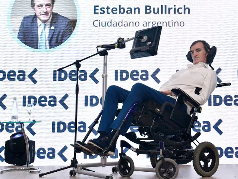 Apoyado en herramientas informáticas que le permite llevar su mensaje desde una pantalla que maneja a partir de un software que lee movimientos de los ojos, Bullrich habló durante casi 20 minutos ante un auditorio muy concurrido y hasta se permitió bromear ante los ejecutivos que eligieron acompañarlo en su exposición. "Estaba mejor para despuntar el vicio enfrente con unos hoyos", dijo sobre la tentación que es el Golf Club Playa Grande, frente al Sheraton Mar del Plata, donde se desarrolló este evento.