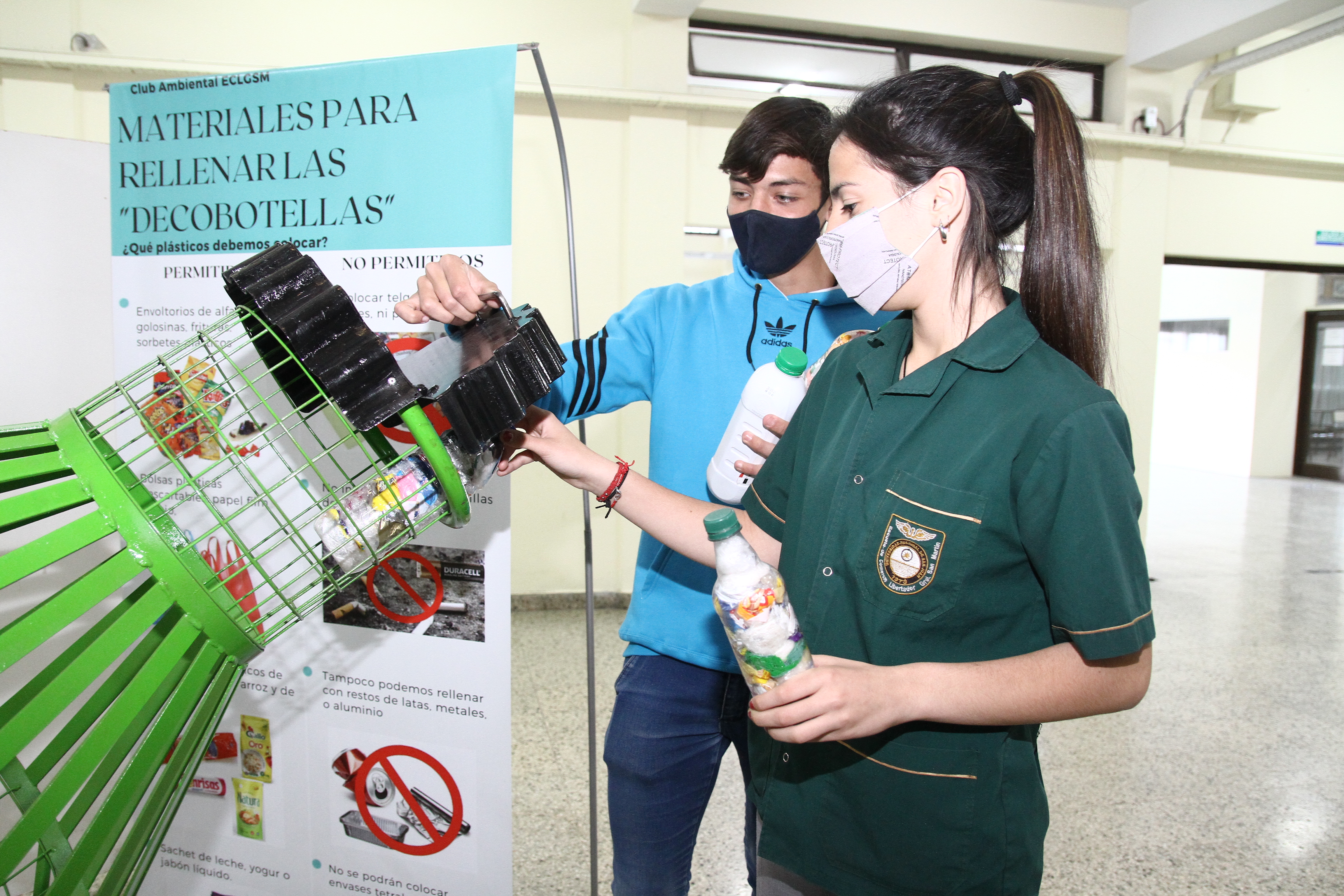 Los estudiantes de la Escuela de Comercio General San Martín, pusieron en práctica una acción que tiene un doble objetivo: incentivar el cuidado del medioambiente y ayudar a los demás. Son los chicos que forman parte del Club Ambientalista, de esta instituto preuniversitario, que idearon una forma creativa de lograr que la comunidad educativa se deshaga de los residuos secos de manera correcta para poder reciclarlos. Para este fin cuentan con una botella gigante, realizada en hierro, dentro de la que deben dejar botellas descartables de bebidas y envases plásticos de otros productos, rellenos con materiales secos como papeles de golosinas y sorbetes, entre otros. Este material luego será vendido para donar lo recaudado con la venta a Casa Sahni (Sociedad Amigos del Hospital de Niños). Pero esto no es todo. El curso que más botellas deposite obtendrá un premio.
