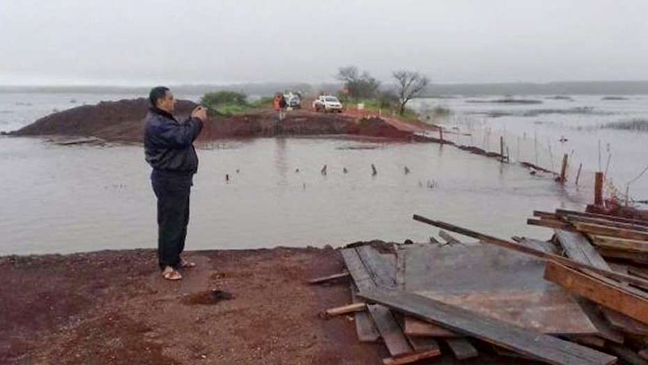 En Corrientes, en tanto, un puente ubicado a la altura del kilómetro 35 de la ruta 123 colapsó por la crecida del río y generó un pozo que supera los 4 metros de profundidad.