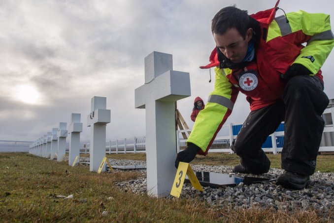 "Las tareas de identificación de los restos de soldados argentinos sepultados en 123 tumbas marcadas con la leyenda ‘Soldado argentino solo conocido por Dios’ en el cementerio de Darwin, ubicado en las islas Falkland/Malvinas comenzaron el 20 de junio pasado y avanzan según lo planeado", informó este viernes el CICR en un comunicado de prensa.