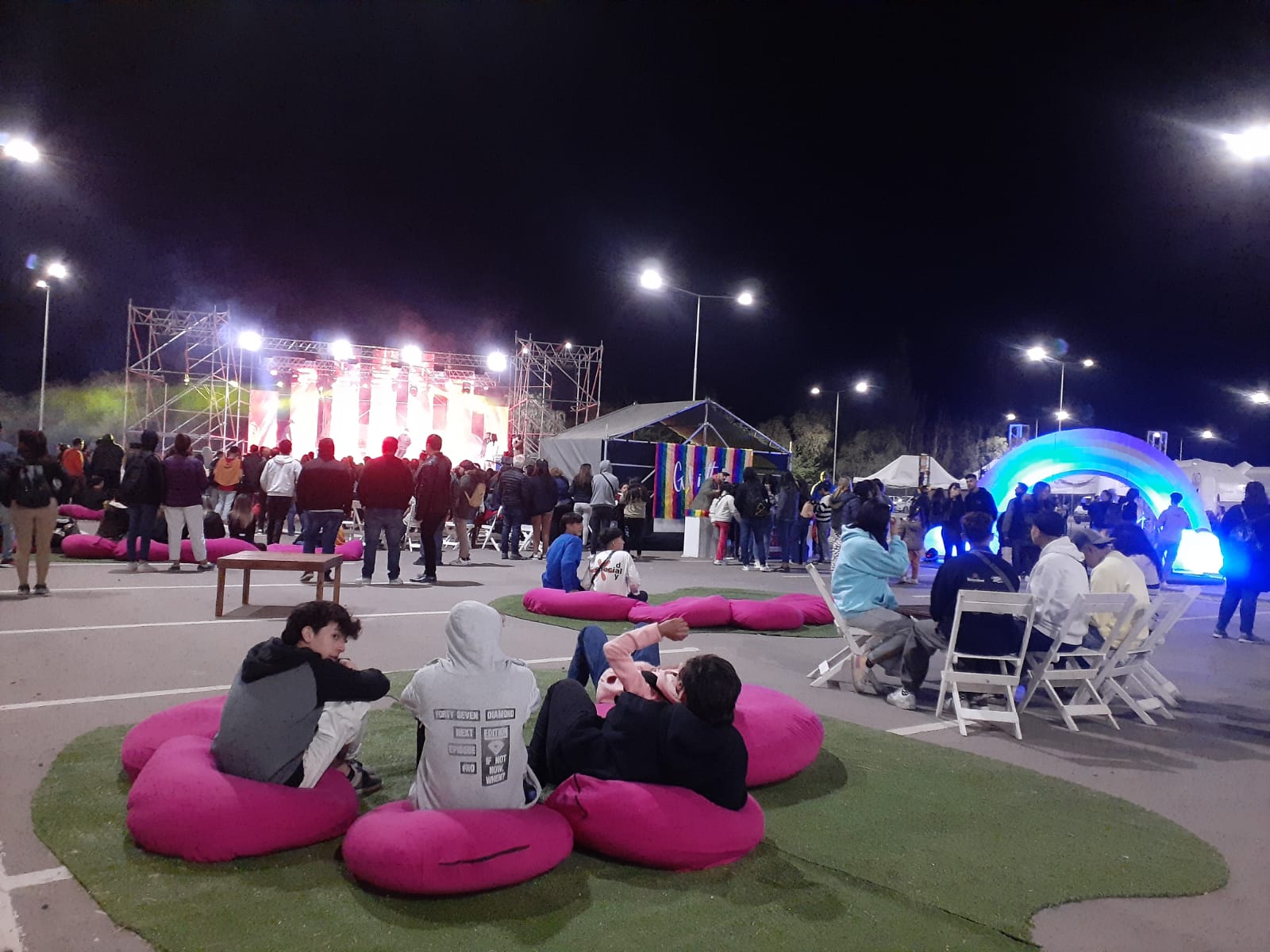 De un lado el Estadio del Bicentenario, del otro el futuro estadio de ciclismo y un poco más allá el Skate Park, en ese complejo deportivo se realizó una nueva jornada de festejo por la Semana de las Juventudes ante unas 40 mil personas, según cifras oficiales. Pese al frío, los jóvenes se concentraron frente al escenario que montaron para que la cantante de pop Emilia Mernes diera su espectáculo.