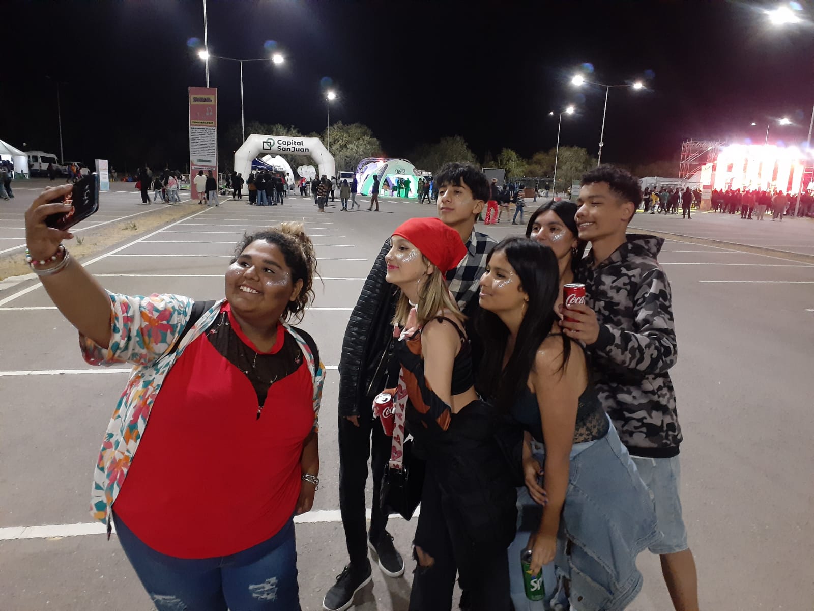 Una importante cantidad de jóvenes sanjuaninos llegó hasta el estacionamiento del Estadio del Bicentenario, en Pocito para vivir un domingo diferente. La mayoría encapuchados por el frío no se privaron de poder participar del espectáculo de Emilia Mernes.