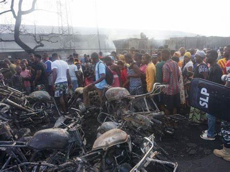 La mayoría de las víctimas son vendedores ambulantes y motociclistas que quedaron atrapados por las llamas al intentar recuperar con bidones el combustible que se derramó tras el accidente, según testigos.