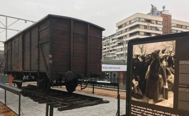 A la entrada de la exposición se puede observar un vagón de tren, en el que transportaban prisioneros parados durante dos o tres días de viaje hacia Auschwitz.