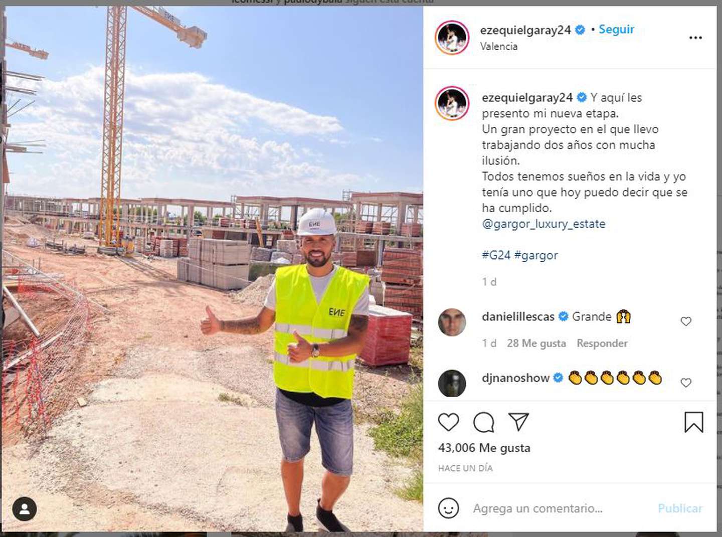 “Y aquí les presento mi nueva etapa. Un gran proyecto en el que llevo trabajando dos años con mucha ilusión. Todos tenemos sueños en la vida y yo tenía uno que hoy puedo decir que se ha cumplido”, escribió el exfutbolista en su cuenta de Instagram, donde mostró una foto con un casco y una obra en construcción en el fondo.