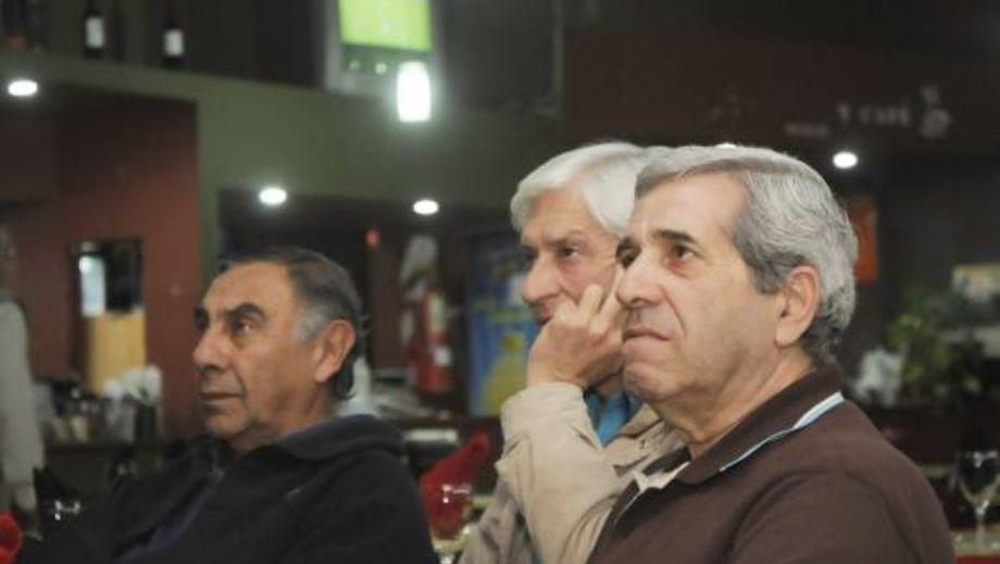 Un fanático de Sportivo Desamparados. En la imagen se ve a Isaac Roque Paz, Ernesto Quattropani, Mario Guerri siguiendo por TV un partido del Víbora