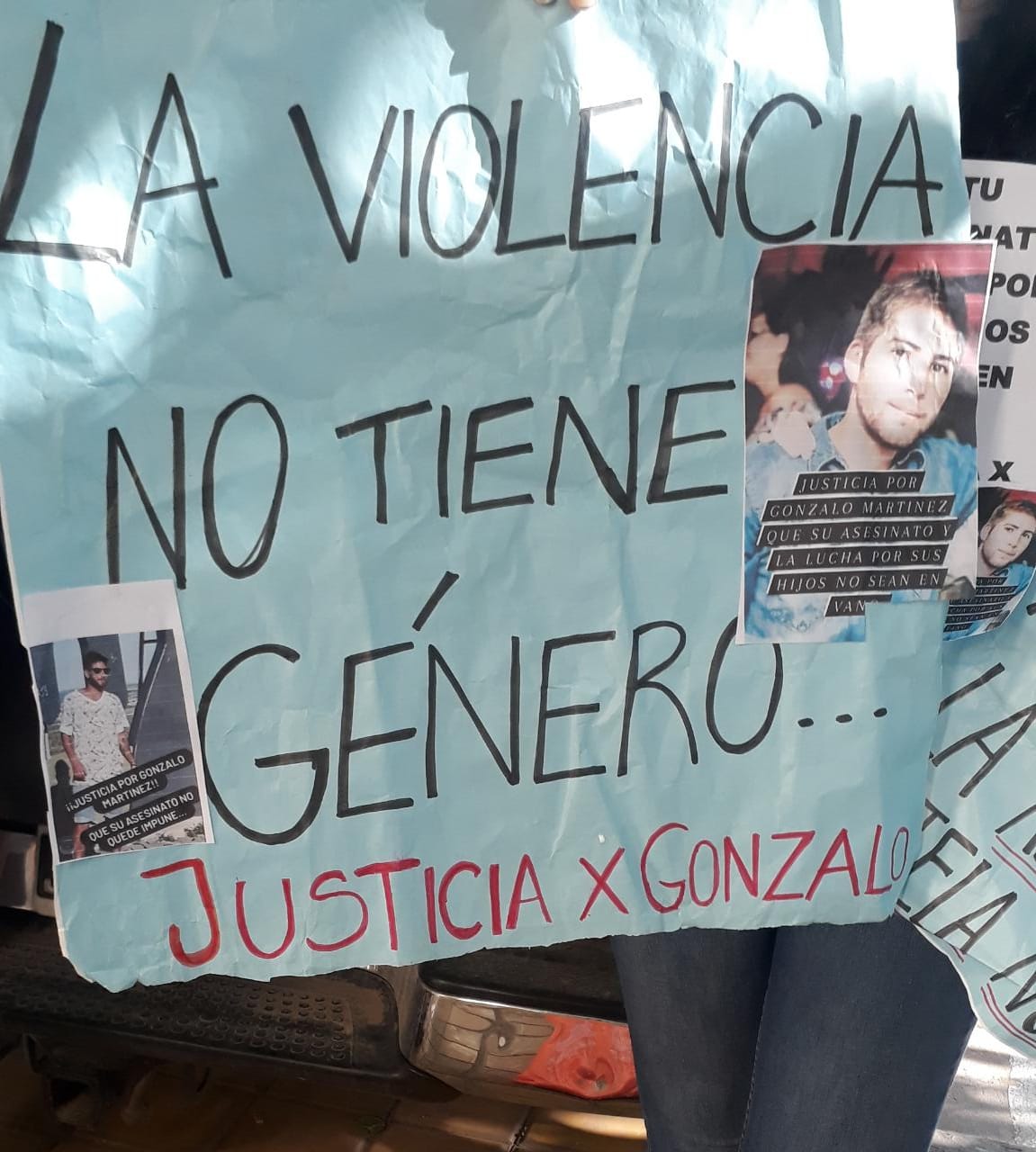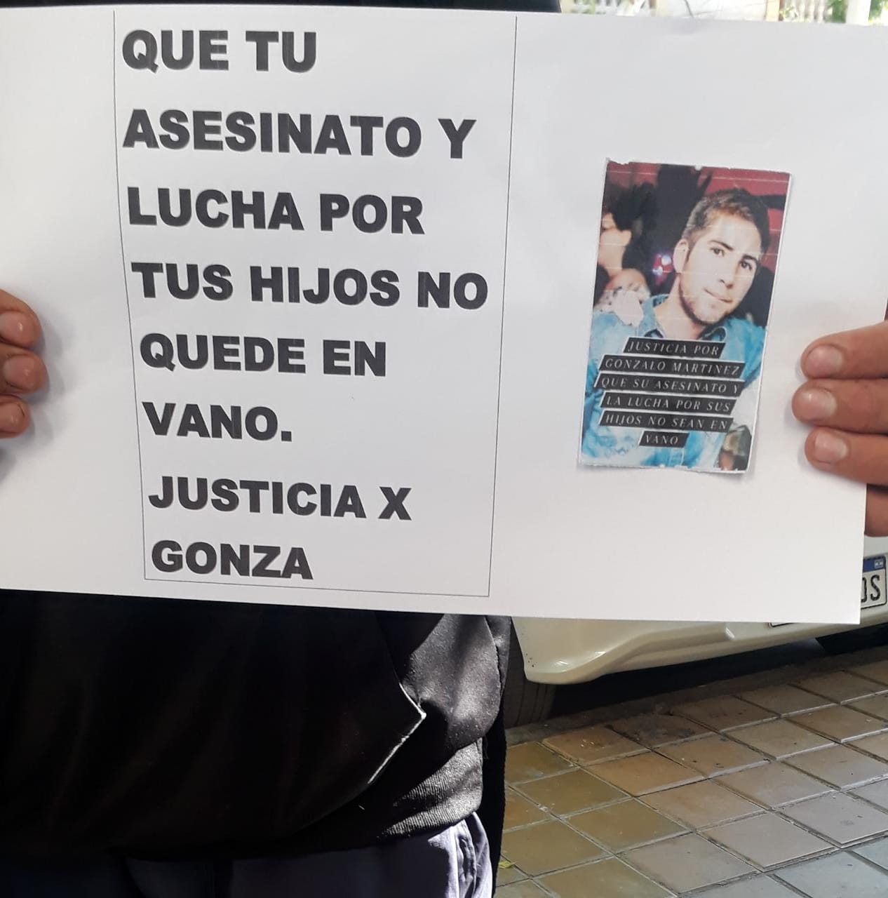 Portando carteles con el pedido de "justicia", familiares y amigos de Gonzalo Martínez, el hombre de 25 años asesinado de un ladrillazo por su ex, se manifestaron en la puerta de Tribunales durante la audiencia de presentación del caso.