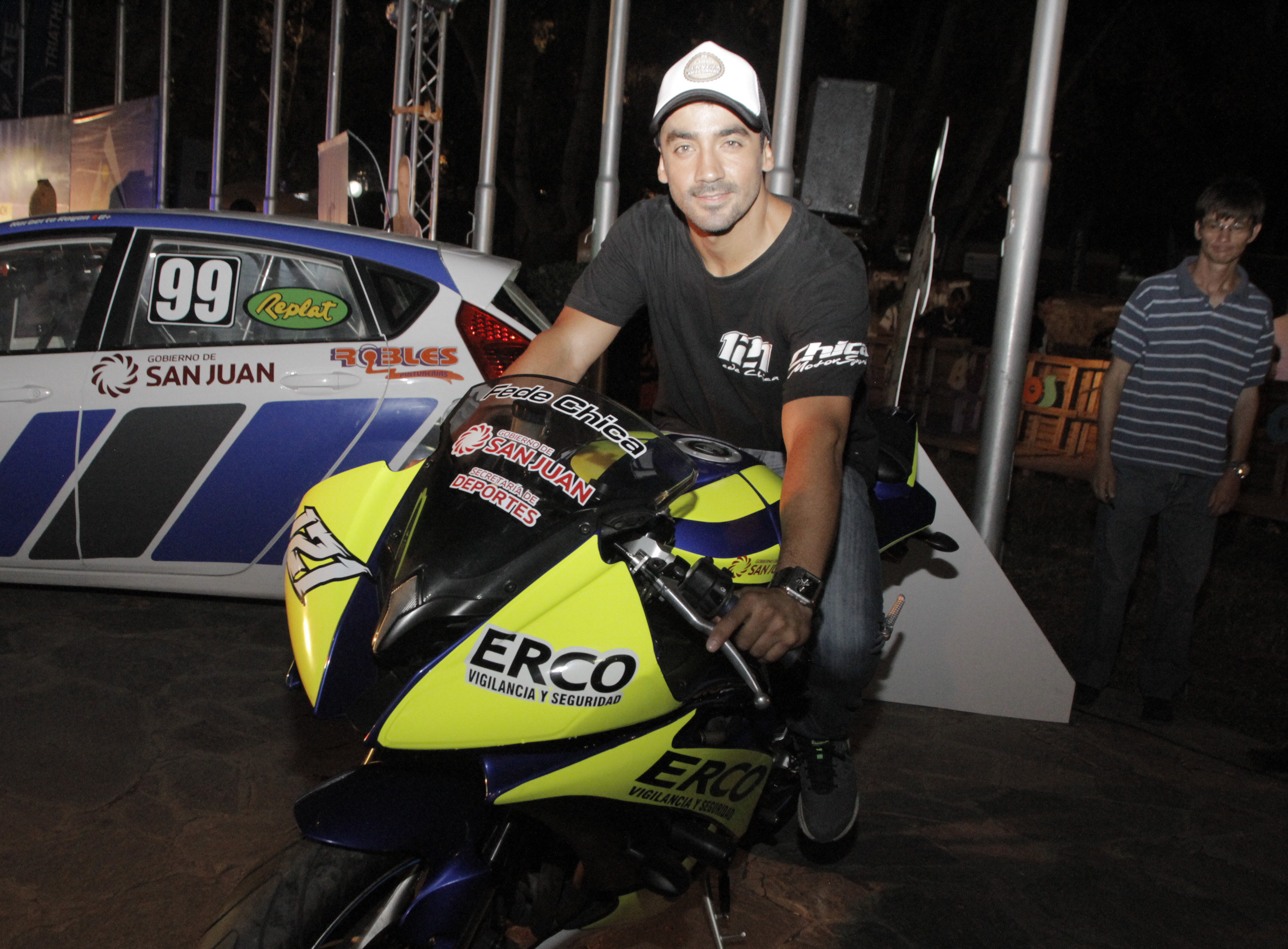 El stand de la Secretaría de Deportes expuso motos y autos de competición. Federico Chica, uno de los pilotos sanjuaninos, fue consultado por muchos curiosos.