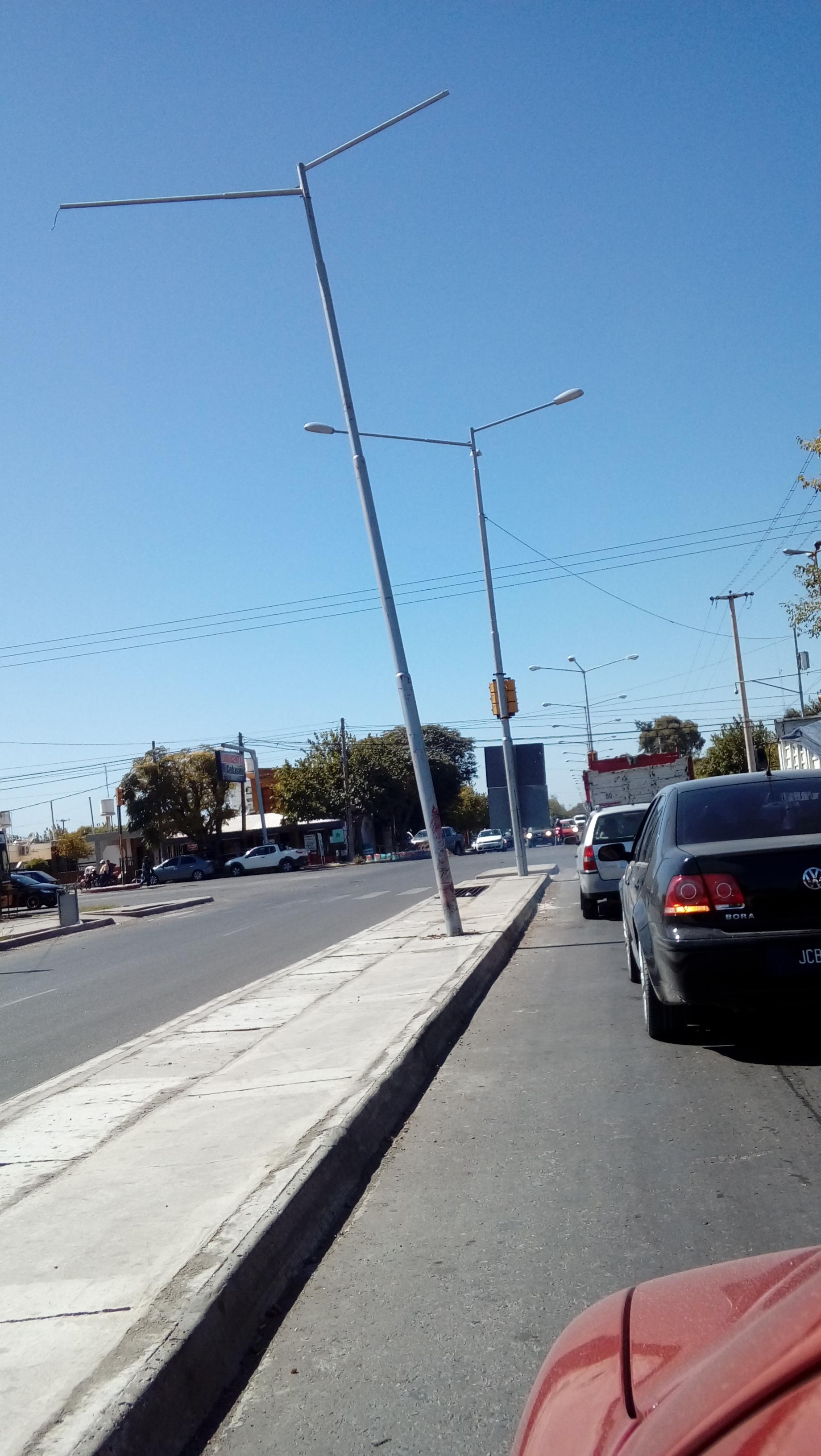Un lector envió una imagen y el siguiente comentario: “Luego de un violento impacto , en calle 5 y Mendoza, quedó una farola a punto de colapsar”.