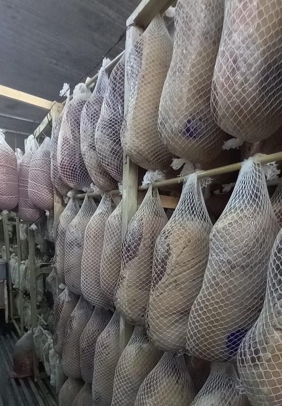 "Partimos entonces de una buena alimentación. Es importante la dieta porque según el origen del tocino en el animal, será el tipo del secado y estacionamiento del producto. Nosotros tercerizamos el desposte del animal y recibimos las piezas o materia prima Premium y conforme a cada producto recibe el tratamiento de salazón y elaboración conforme la receta tradicional de cada producto", indicó el emprendedor.