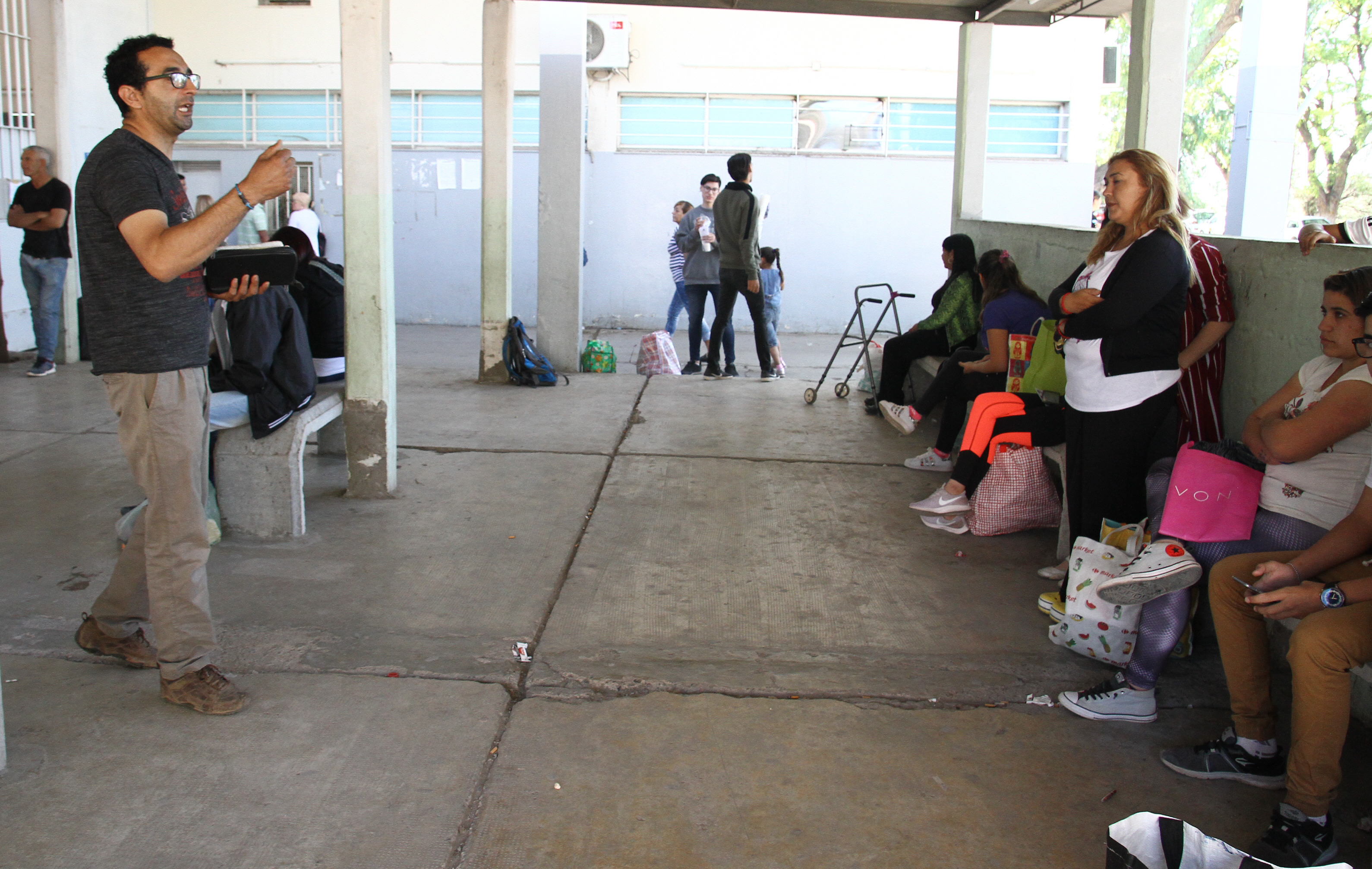 Mujeres con mochilas cargadas de mercadería, niños que sostienen cartones de huevos y hombres adultos con algunos regalos envueltos en papeles de colores forman parte de las postales que suelen verse en la puerta del Penal de Chimbas cuando hay día de visitas. Durante la previa la ansiedad, el cansancio y la tristeza muchas veces hace insoportable la espera. Para combatir estos sentimientos un grupo de fieles evangélicos realiza diferentes actividades para contener, ayudar y hasta entretener a los familiares antes de que atraviesen el enorme portón para ingresar a la penitenciaría.