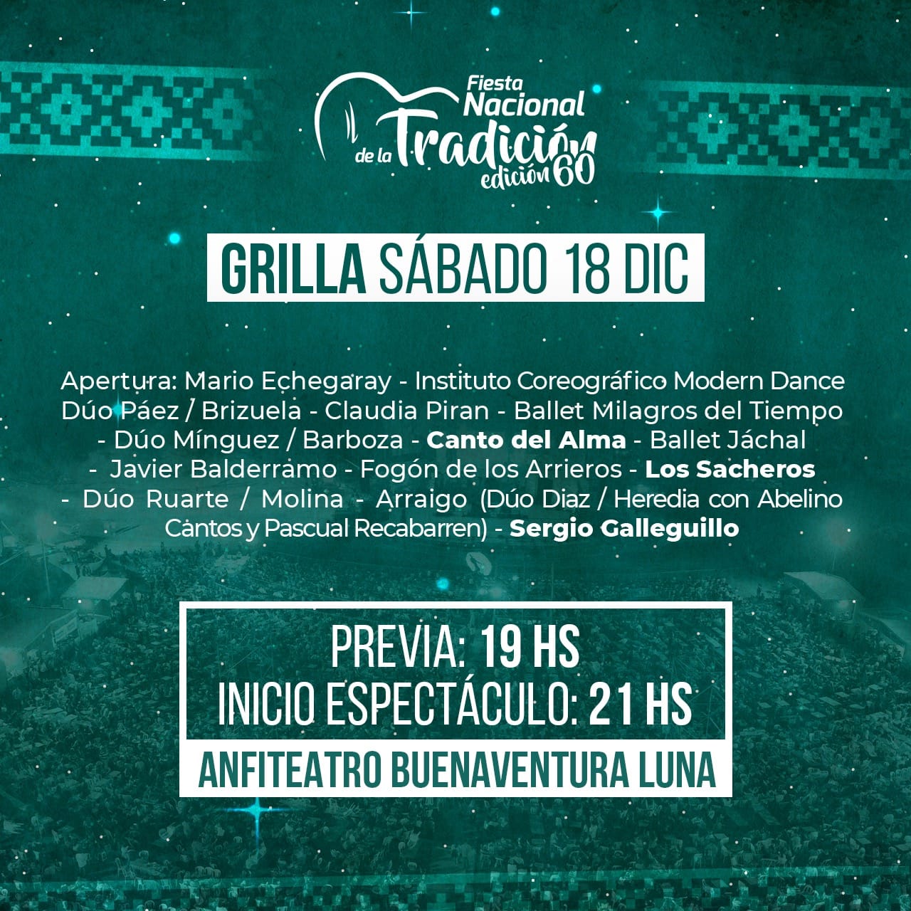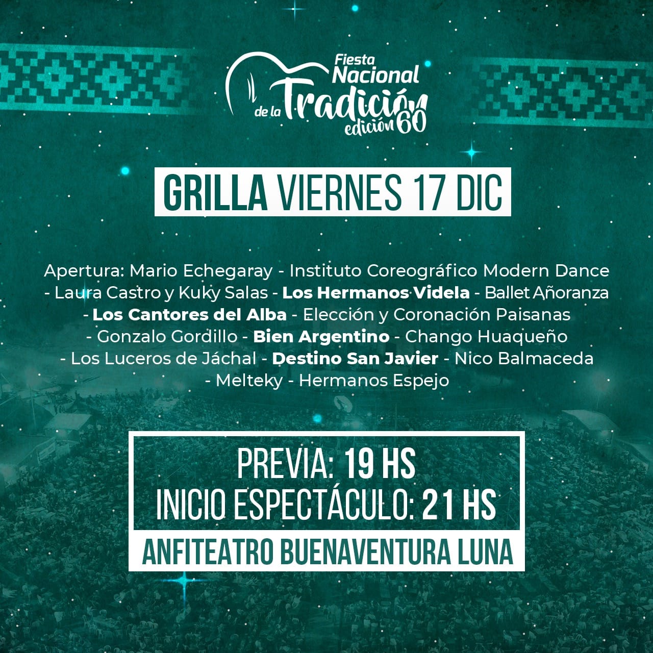 La Fiesta Nacional de la Tradición se realizará en Jáchal de modo presencial este año, después del parate motivado por la pandemia. El gran evento que se desarrollará entre los próximos 17 y 19 de diciembre en el Auditorio Buenaventura Luna y ya están en venta las entradas para participar.