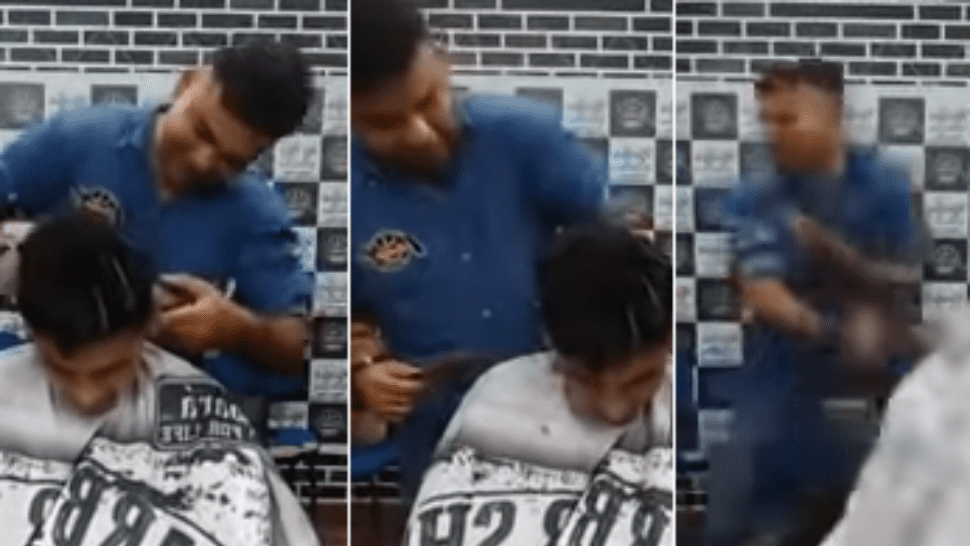 El herido se desploma en su lugar mientras la cámara sigue captando la escena. Los medios locales informaron que el barbero perdió la vida y el adolescente se encuentra en grave estado.